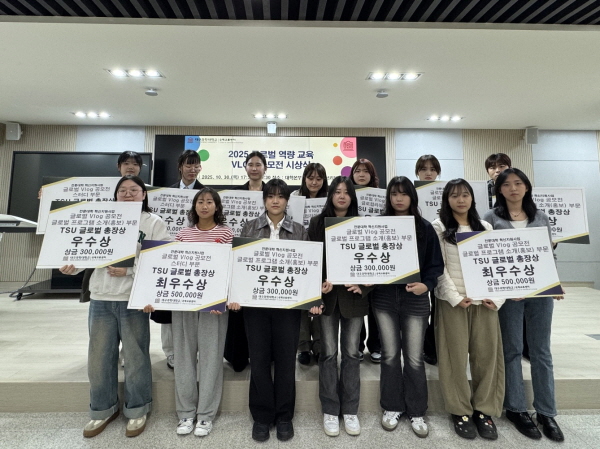 공모전은 지난 9월 8일부터 10월 10일까지 진행됐으며 ▲TSU 스터디 VLOG ▲TSU 글로컬 라이프 VLOG ▲TSU 글로벌 프로그램 소개(홍보) VLOG 등 총 3개 부문에서 재학생 35여 명이 참가했다.
