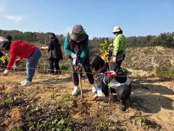 참가자들은 임하면 신덕리 일원에서 안동시청 산림과의 협조로 상수리나무(3년생) 100본을 식재하고 표시봉을 설치하는 활동을 1시간 동안 진행했다.