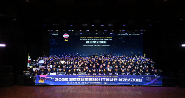 (경북=NSP통신) 김대원 기자 = 한국지능정보사회진흥원(원장 황종성, 이하 NIA)은 28일 서울 가빈아트홀에서 400여 명의 봉사단원 등과 함께 ‘2025년 월드프렌즈코리아 IT봉사단 성과보고대회(이하 성과보고대회)’를 개최했다.
