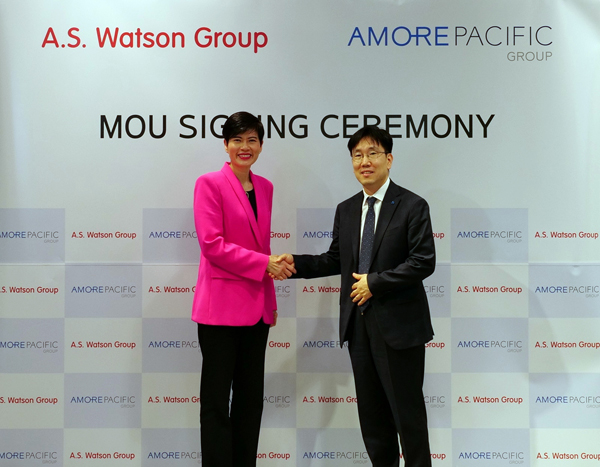아모레퍼시픽그룹의 이상목 대표와 A.S. 왓슨 그룹의 말리나 응아이(Malina Ngai) 아시아 & 유럽 CEO는 지난 21일 아모레퍼시픽그룹 본사에서 만나 이 같은 내용을 담은 양해각서에 서명했다.