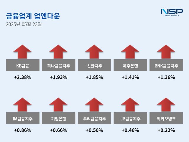 우리금융지주는 전거래일 대비 0.50%(90원) 올라 1만8070원으로 장을 마감했고 JB금융지주는 전거래일 대비 0.46%(80원) 올라 1만7360원으로 장을 마쳤다.