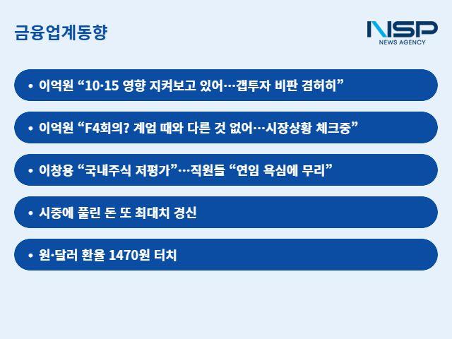 한편 이날 원·달러 환율이 1470원을 터치한 가운데 코스피는 기관들의 순매수로 4000선을 유지하고 있다. 이와 관련해 금융시장에 대한 불안감이 이어지지만 F4회의가 이뤄지지 않고 있다는 지적이 나오자 이 위원장은 “차관 단위에서 경제상황 점검회의를 통해 챙기고 있다”며 “소홀히 하는 것은 없다”고 답했다.