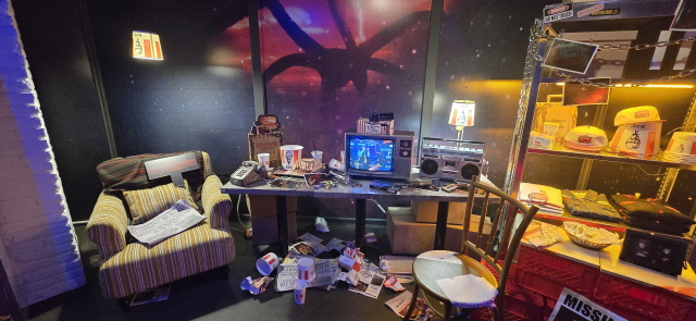1층에 들어서면 일반 매장에 기묘한 이야기 관련 테마들이 무난하게 배치돼 있다. 본격적인 체험의 시작은 2층부터 진행된다. 2층으로 올라가는 계단부터 수배 포스터와 빨간 조명으로 시선을 끌고 체험장 입구가 맞이하고 있다.