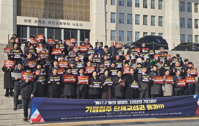가맹점주들은 해당 법안 가결 전까지도 비장한 모습으로 국회에 들어섰다. 법안은 통과되더라도 투쟁과 눈물의 과정을 잊을 수 없다는 것. 이날 오후 1시 국회 본회의가 진행되기 전 본청 계단 앞에서는 전국가맹점주협의회 소속 점주들을 비롯해 참여연대, 민변 민생경제위원회, 대한가맹거래사협회 등 시민·사회 단체자들이 모였다.