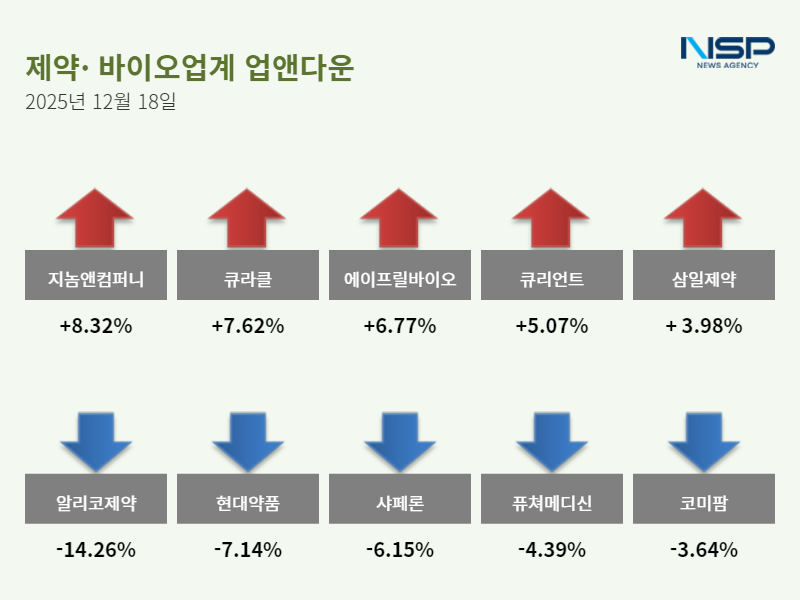 제약주 하락…지놈앤컴퍼니↑· 알리코제약↓