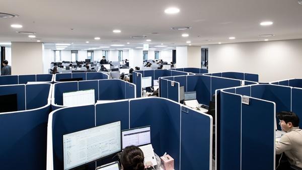 특히 임직원의 근무 만족도를 높이기 위해 시각적인 개방감을 확보한 120도형 책상은 물론, 프라이버시를 중시하는 임직원들을 위해 파티션 형태의 개인 근무석을 강화했다.
