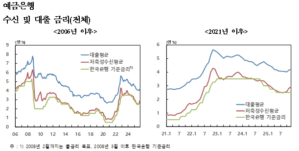 27일 한국은행이 발표한 ‘2025년 12월 금융기관 가중평균금리’에 따르면 지난해 12월 신규취급액 기준 저축성수신금리는 연 2.90%로 전월대비 0.09%p 상승했다. 대출금리는 연 4.19%로 전월 대비 0.04%p 상승했다.