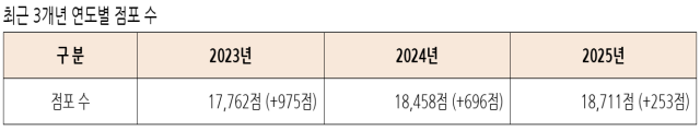 실제로 BGF리테일의 최근 점포 수 추이를 보면 꾸준히 증가하고 있지만 2023년부터 ▲+975점 ▲+696점 ▲+253점으로 그 증가폭이 점점 줄어들고 있다. 하지만 연간 실적은 지속 상승하며 편의점 업계의 트렌드가 ‘점포 확장’ 중심보다는 수익성 개선과 해외로 이동 중임을 증명했다. 실제로 BGF리테일은 지난해 CU의 손익 우량점 중심 출점과 중대형 점포 확대를 통해 생산성을 높였고 이는 신규점 일매출도 전년대비 6.4%의 상승세로 이어졌다.
