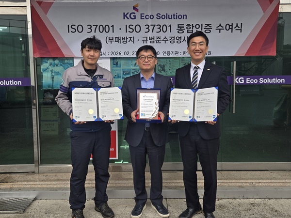 (서울=NSP통신) 강은태 기자 = KG에코솔루션이 국제표준화기구(ISO)가 제정한 ▲준법경영시스템(ISO 37301)과 ▲부패방지경영시스템(ISO 37001) 통합인증을 획득했다.