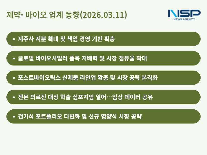 (서울=NSP통신) 정송이 기자 = 고금리·고환율 기조의 장기화와 글로벌 규제 스탠다드 강화라는 이중 압력 속에서, 국내 주요 제약·바이오 그룹들은 지배구조 응집력 제고, 해외 시장 점유율 확대, 컨슈머 헬스케어 포트폴리오 다변화를 3대 축으로 삼아 수익 기반의 질적 고도화에 본격 나서는 모양새다. 이는 단순한 외형 성장 추구에서 탈피해 책임 경영 체제 확립과 안정적 현금 흐름 창출을 동시에 도모하려는 전략적 전환점으로, 업계 전반에 걸쳐 지속 가능한 성장 구조 구축을 향한 일관된 경영 기조가 뚜렷이 감지된다.